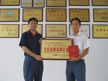 我司自成立以來,一直恪守守法履約、誠信經營的理念。這次能榮膺廣東省“連續十八年守合同重信用企業”稱號,是對我司工作的極大肯定和鼓勵,我們將一如既往為廣大消費者提供健康、營養的綠色食品。